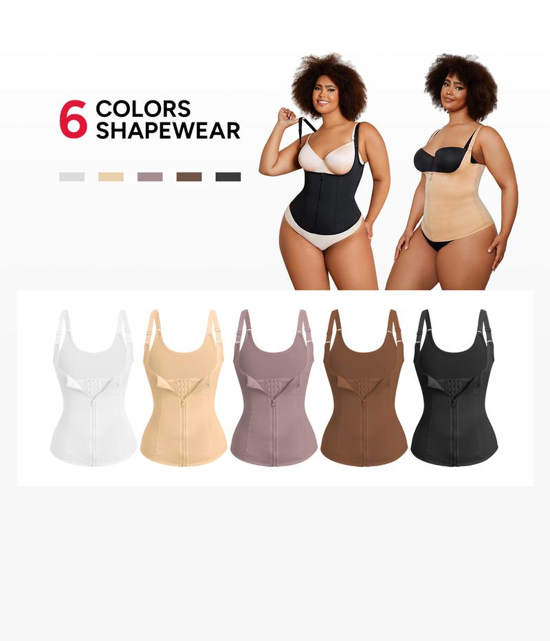 Key features include a classic chest-lifting design that enhances your curves, while the double-layered front effectively tightens the waist and abdomen. The vest is equipped with detachable and adjustable straps, allowing you to customize the fit to your comfort level. The outer zipper, combined with a double-layer abdomen featuring a row-buckle and zipper, ensures robust tummy control, giving you the support and confidence you need throughout your day.