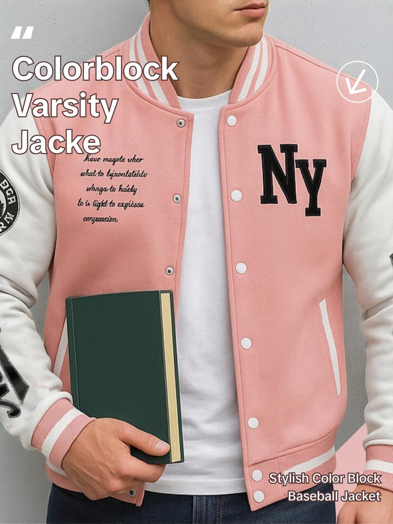 Step into the spotlight with our Men's College Style Baseball Jacket, a must-have for any fashion-forward individual looking to elevate their streetwear game. Featuring eye-catching letter graphics and a cool color block style, this jacket is designed to showcase your unique personality and sense of style.