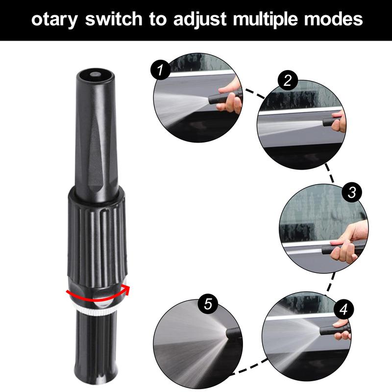 ADJUSTABLE: Equipped with a versatile 6-pattern adjustable nozzle, you can easily switch between cone, center, shower, fill, mist, and jet settings to suit any task, whether you're watering plants, washing your car, or cleaning outdoor furniture.