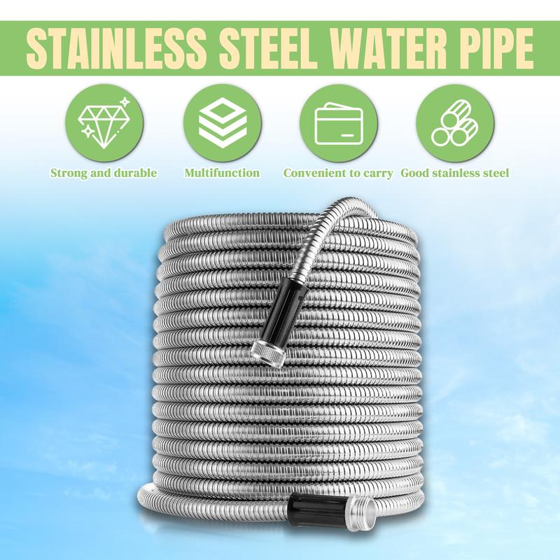 ULTRA DURABLE: Crafted from 304 stainless steel, this hose is built to last. It resists rust, leaks, and punctures, ensuring it withstands the rigors of outdoor use and extended drags over tough surfaces.