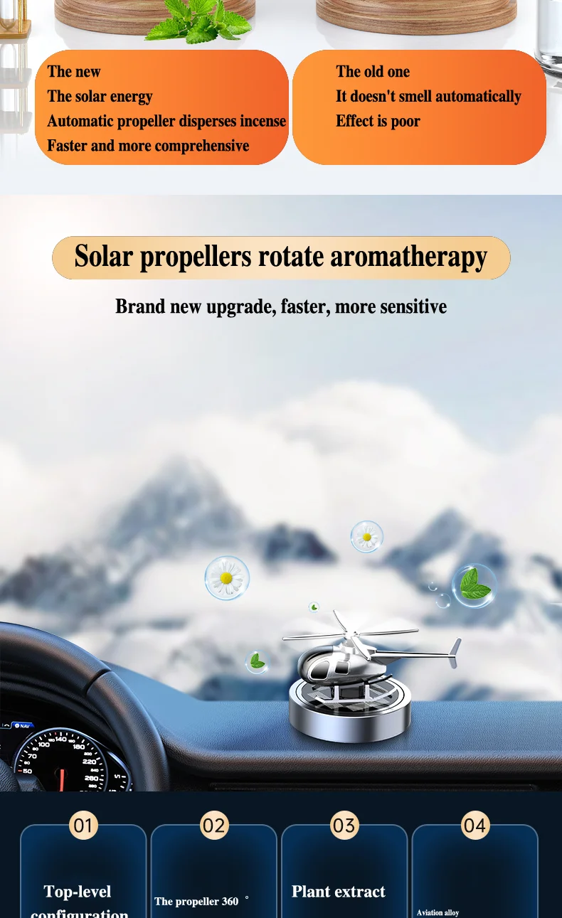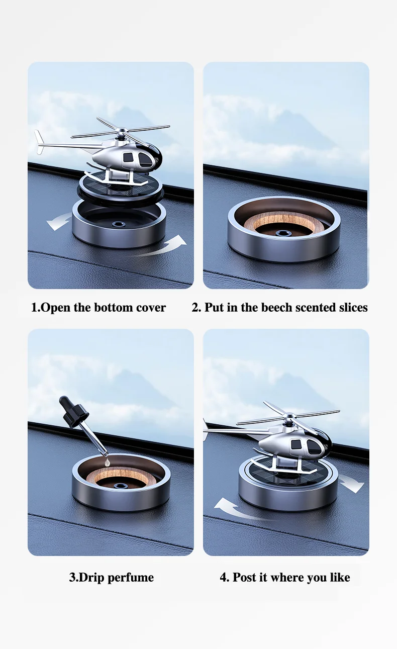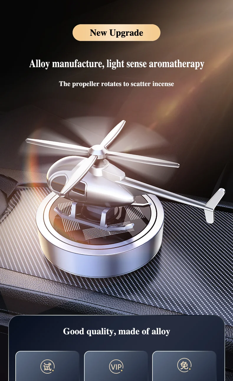 Solar-Powered Helicopter Car Air Freshener - Unique Propeller Rotating Perfume Diffuser for Your Vehicle Interior