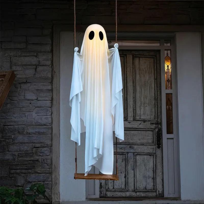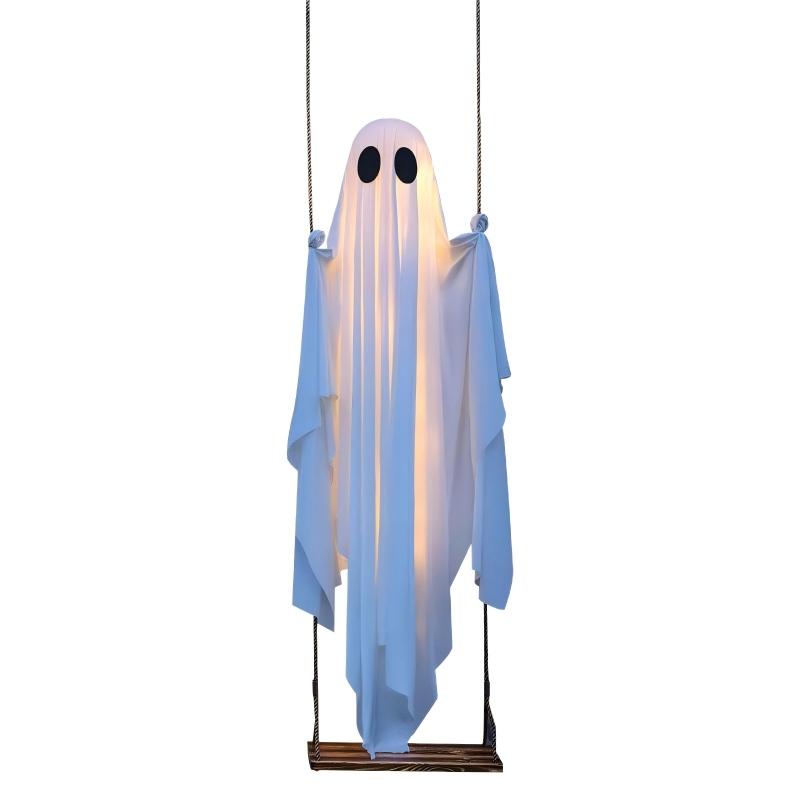 Spooky 5Ft Hanging Swinging Ghost with Lights - Perfect for Halloween Outdoor Decoration & Haunted Tree Decor for Porch and Yard