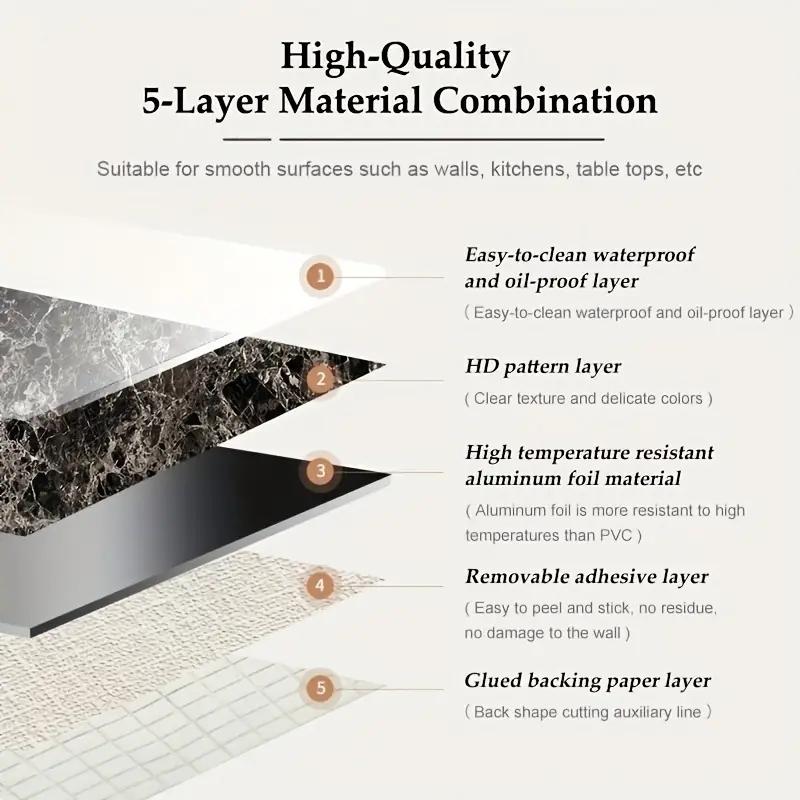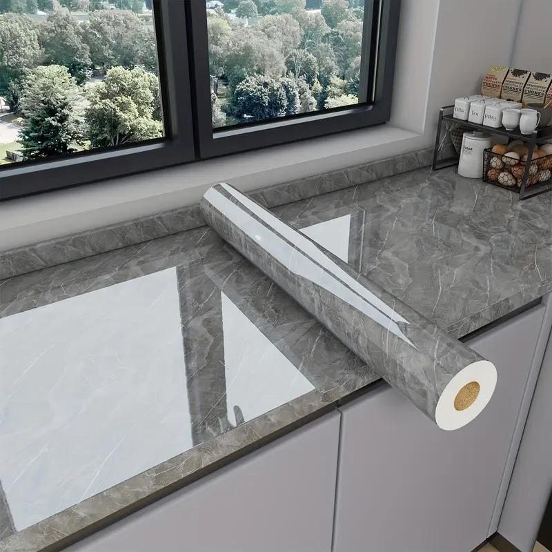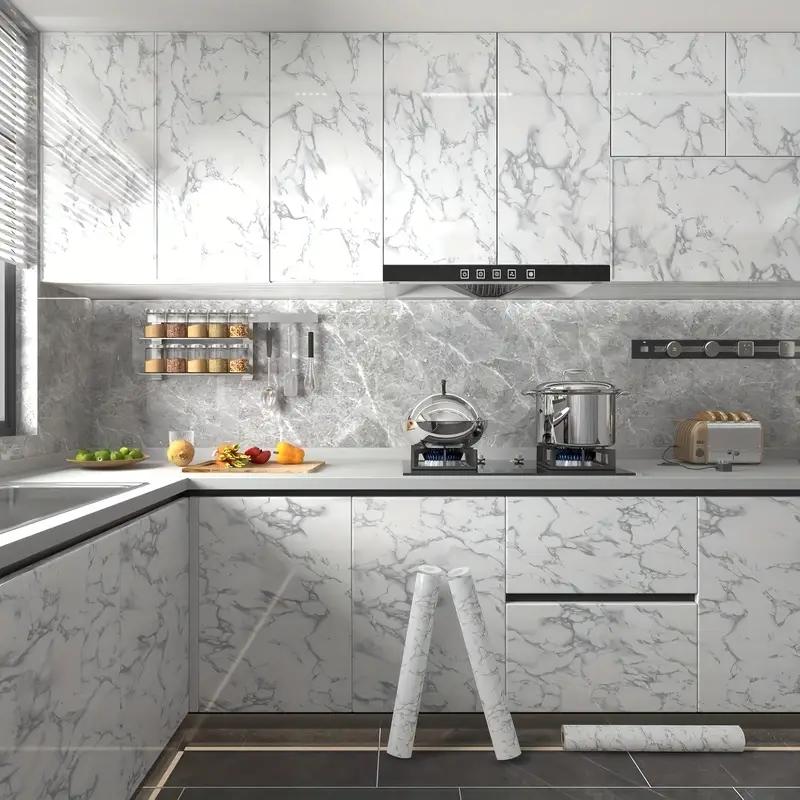 Stylish Marble Pattern Self-Adhesive Wallpaper - Waterproof & Oil-Proof Wall Decal for Home Kitchen, Living Room, and Bedroom Décor