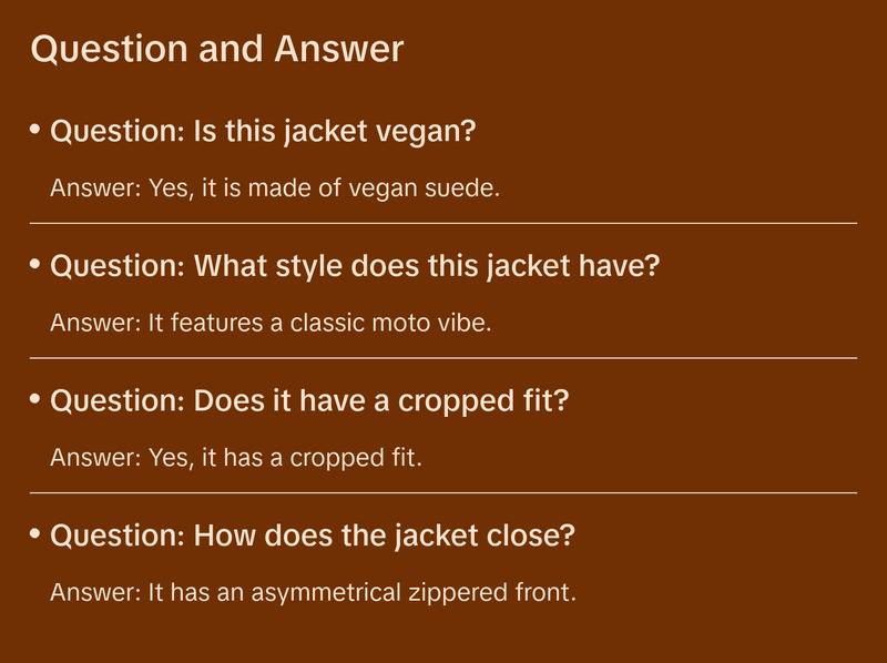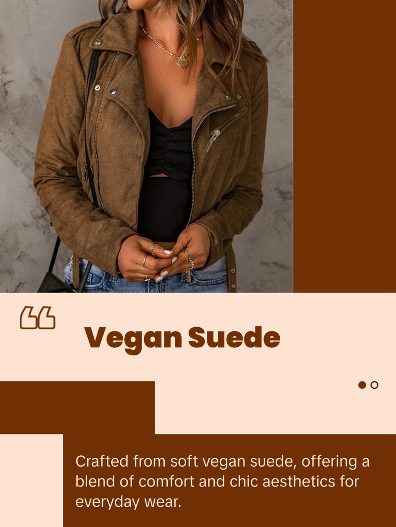 - Crafted from soft vegan suede, this jacket ensures you feel as good as you look, making it perfect for any occasion.