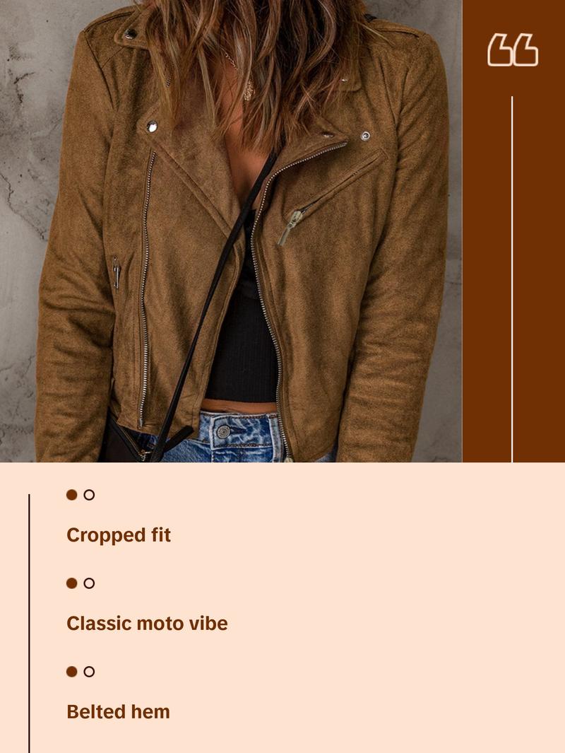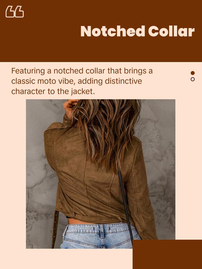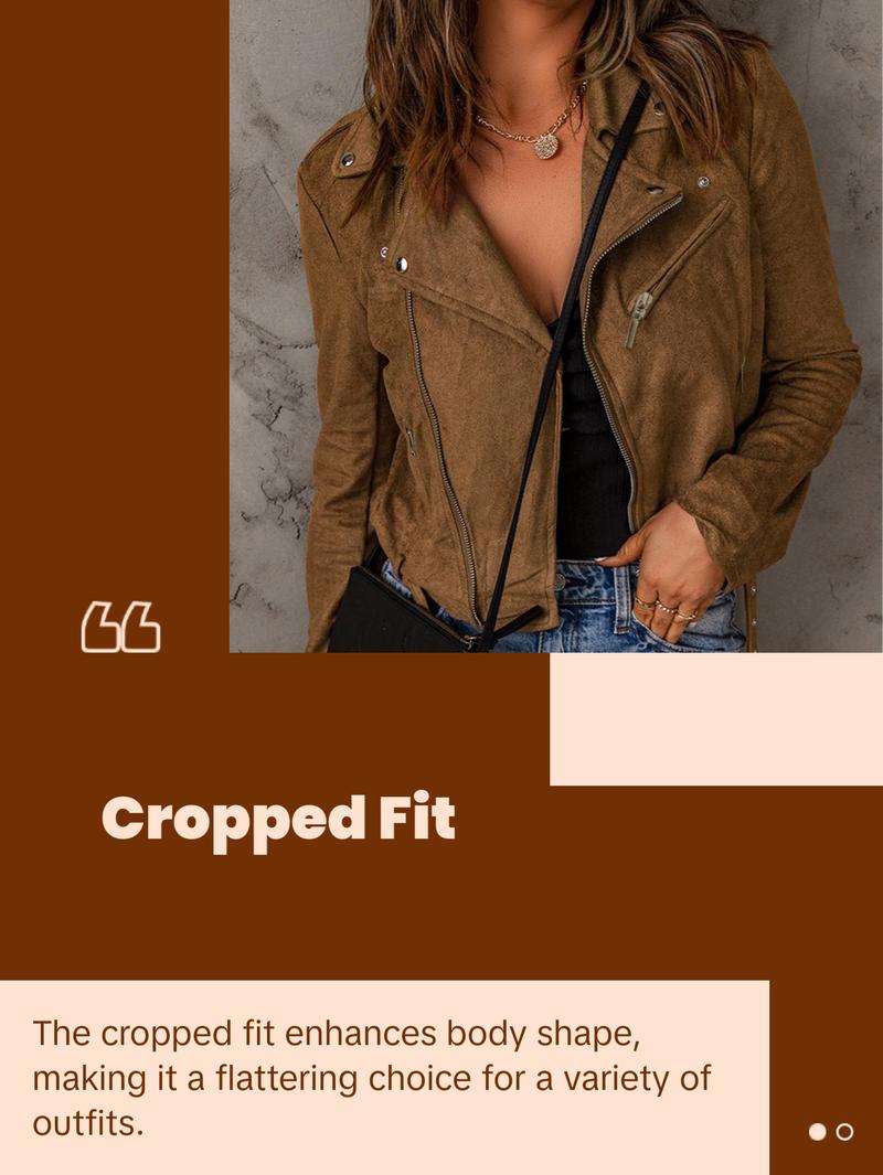 - The cropped fit and notched collar add a chic touch, channeling a timeless moto vibe that never goes out of fashion.