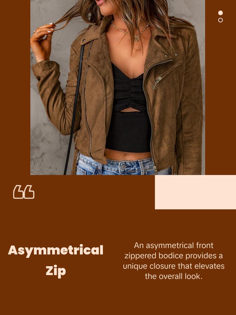 - Introducing the Trendy Suede Zip-Up Jacket, your new wardrobe essential that seamlessly combines style and comfort.