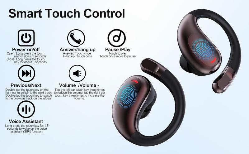 - 【Smart Touch Control & Wide Compatibility】Take control of your audio with our smart L/R touch control feature. Easily manage your music, adjust volume, and answer or end calls with a simple tap on either earbud. Activate your device's voice assistant without reaching for your phone—it's intuitive and convenient! These earbuds are widely compatible with iOS and Android phones, tablets, and laptops, making them ideal for both entertainment and sports activities.