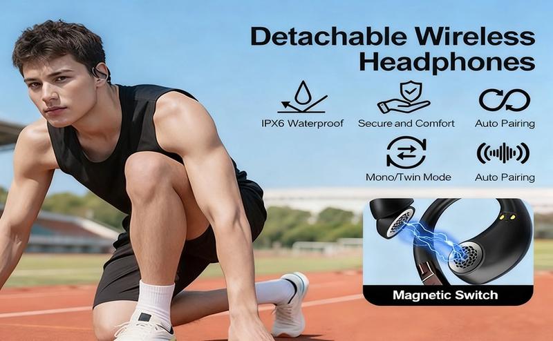- 【2-in-1 Open-Ear/In-Ear Wearing Designs】Experience the ultimate versatility with our Ultimate Wireless Bluetooth Earbuds. These innovative noise-cancelling earbuds allow you to effortlessly switch between open-ear and ear-in modes using convenient magnetic technology. Stay aware of your surroundings during commutes with the open-ear mode, or lock them into ear-in mode for a secure, non-slip fit during intense activities like running, jumping, and cycling. Designed for comfort, their ergonomic auricle-fitting design ensures a lightweight and pain-free experience, allowing you to enjoy your music for over 4 hours.