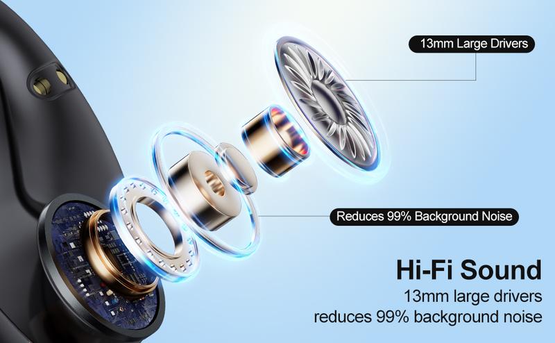 - 【Hi-Fi Sound & Directional Sound Transmission】Immerse yourself in superior audio quality with our directional sound transmission technology. These open ear headphones deliver precise sound delivery while safeguarding your privacy and preventing sound leakage. With powerful 13mm drivers, experience deep bass, rich midrange, and crystal-clear treble that brings your workout playlists to life. Plus, our built-in ENC microphones effectively reduce 99% of background noise, ensuring your calls are always crystal clear, no matter where you are.