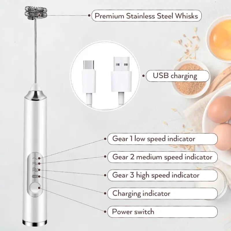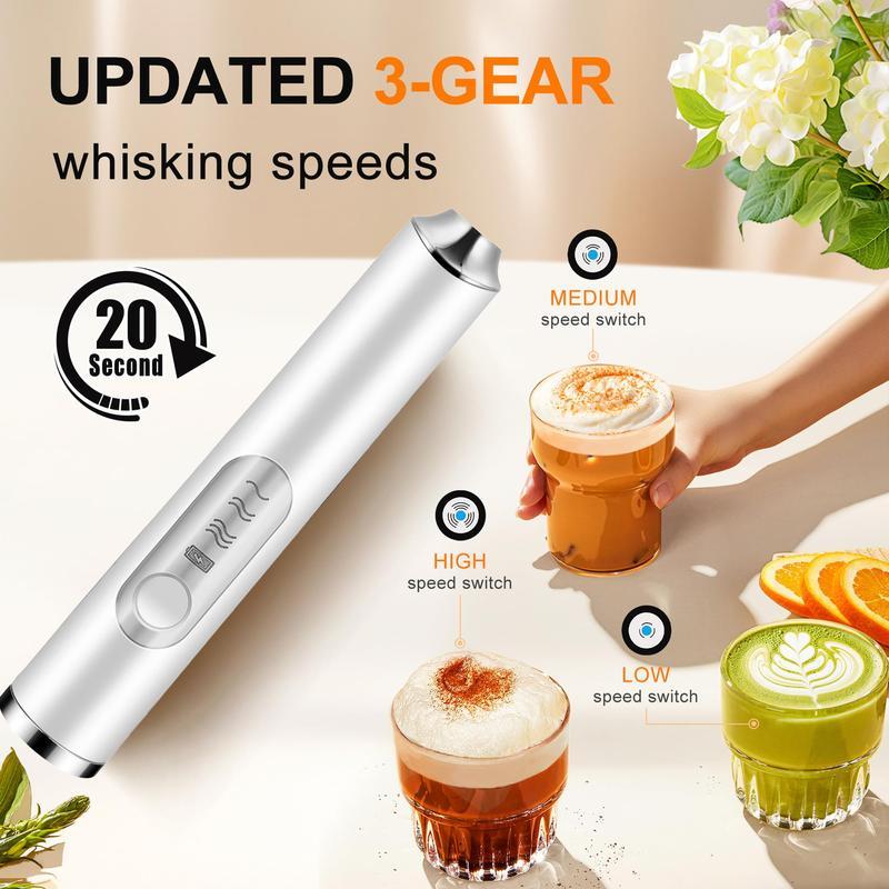 Versatile Rechargeable Milk Frother with 3 Heads & Speeds - Perfect for Lattes, Cappuccinos, Matcha, and More!